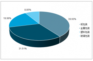 目前,中国市场上应用最广泛的是纸质包装和塑料包装产品,其次是金属包装和玻璃包装。据调查数据统计显示,纸包装、塑料包装、金属包装和玻璃包装合计实现营业收入9433.74亿元,纸和纸板制造占整个包装主营业务收入的39.66%,其次分别为金属包装、塑料包装和玻璃包装,分别占比31.51%、19.99%和8.85%。