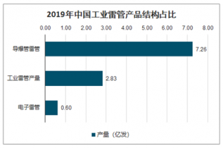 从工业雷管产品结构来看,2019年导爆管雷管产量为7.26亿发,占雷管总产量的66.18%;工业雷管产量为2.83亿发,占雷管总产量的25.80%;电子雷管产量为0.60亿发,占雷管总产量5.47%;其他雷管产量约占工业雷管总产量的2.55%。