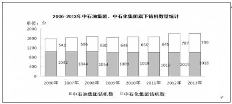 2013-2014年中石油集团、中石化集团下属钻机数量情况如下图所示: