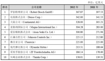 2012 年全球OEM 市场前十大汽车零部件供应商
