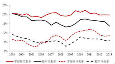2003 年以来我国整车及零部件上市公司的行业盈利水平波动趋势
