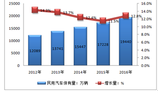 2012-2016年全国民用汽车保有量情况分析