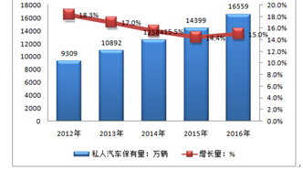 2012-2016年全国私人汽车保有量情况分析