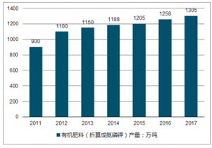 2011-2017年中国有机肥料市场产量情况