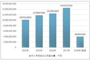 2016年我国对二甲苯进出口贸易总量12418015853千克,2017年进出口贸易总量14473227016千克;2019年1季度进出口贸易总量3926910184千克。