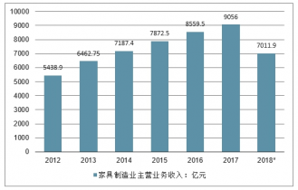 2012-2018年家具制造业主营业务收入情况