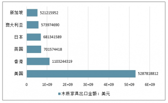 2017年我国木制家具主要国家出口金额:美元