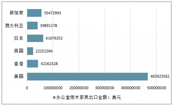 2017年我国办公室用木家具主要国家出口金额情况
