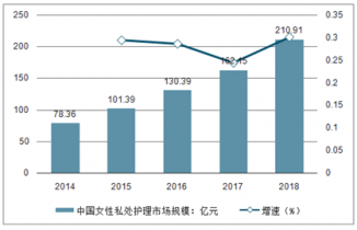 2019年我国女性私处护理市场规模为210.91亿元,较2017年的162.13亿元增长30.09%。近年来我国女性私处护理市场规模如下图所示:
