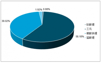 2018 年三元装机占比 58.18%。从电池类型来看,2018 年 56.98Gwh 总装机量中,NCM 三元电池以 33.1 GWh 占比 58.18%, 排在首位,同比增加 102.97%;磷酸铁锂电池以 22.2GWh 占比 39.02%排名第二,同比增加 22.52%;锰酸锂电池以 1.09GWh 占比 1.92%,排在第三位;钛酸锂电池以 0.5GWh 占比 0.88%,排在第四。
