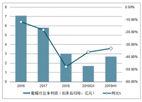 2016-2019年上半年中国鞋帽行业净利润(扣非后归母,亿元)
