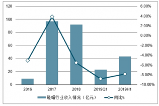 2016-2019年上半年中国鞋帽行业收入情况(亿元)