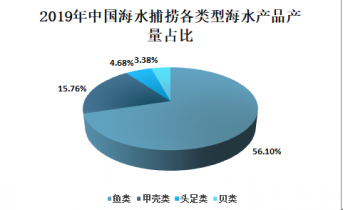 海水捕捞的主要产品与人工养殖的不同,海水捕捞主要产品为鱼类,鱼类产量占比达捕捞海水产品的56.1%。甲壳类排名第二,产量占比为15.76%;头足类和贝类产量分别占捕捞海水产品的4.68%、3.37%。